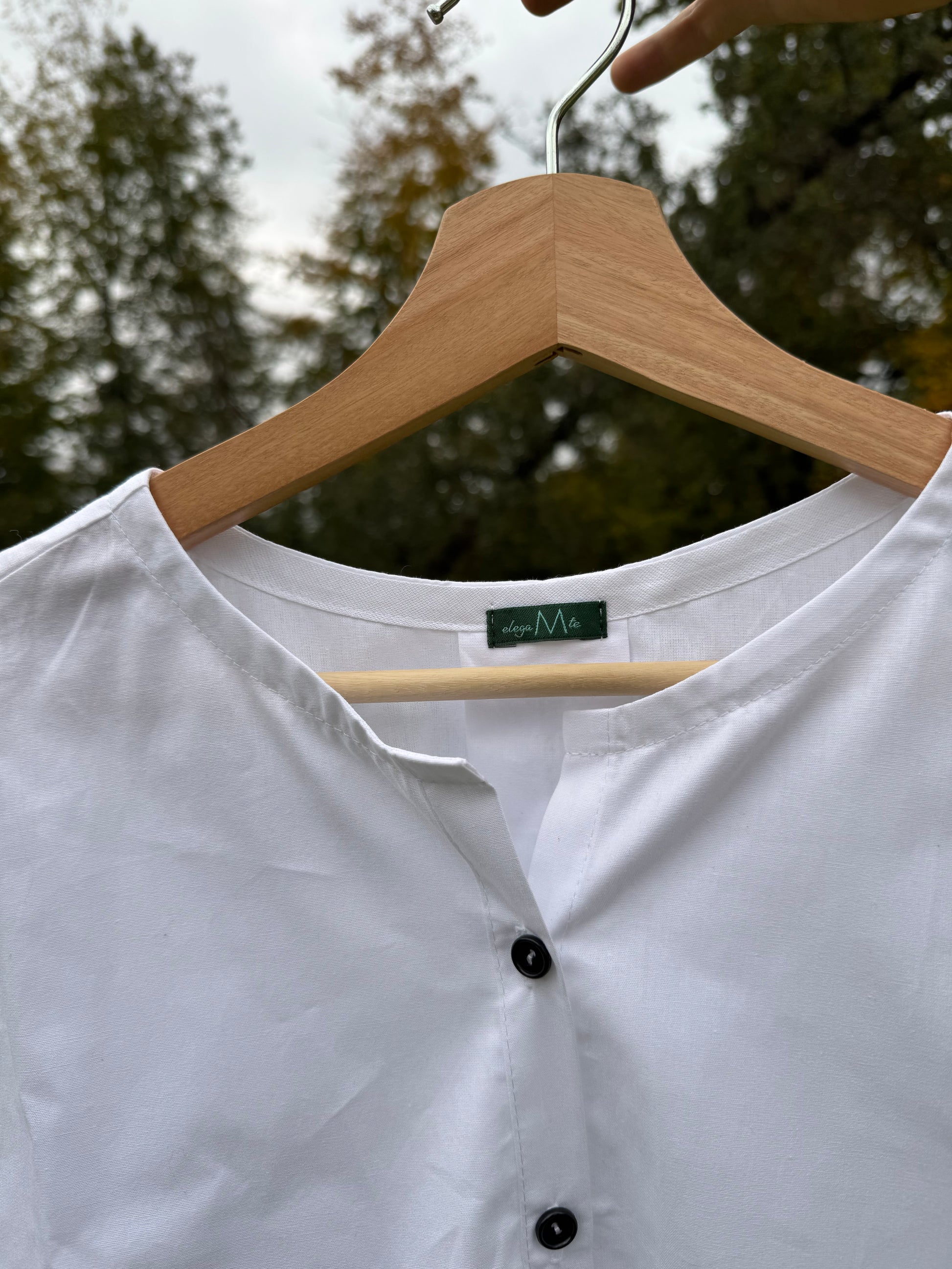 Nejenže je bílá košile základem každého šatníku, navíc ji oblečete vlastně kamkoliv a díky příjemné organické bavlně s GOTS certifikací ani nebudete chtít nic jiného nosit a čím více bude košile nošená, o to víc bude plyšovější. Krásná nebude jen sama o sobě ke kalhotám nebo do sukně, ale i s vestou či svetrem, protože její zdobné prvky při vrstvení nezaniknou. Rukávy jsou zakončené gumičkou, je tedy možné délku rukávu upravit podle potřeby.