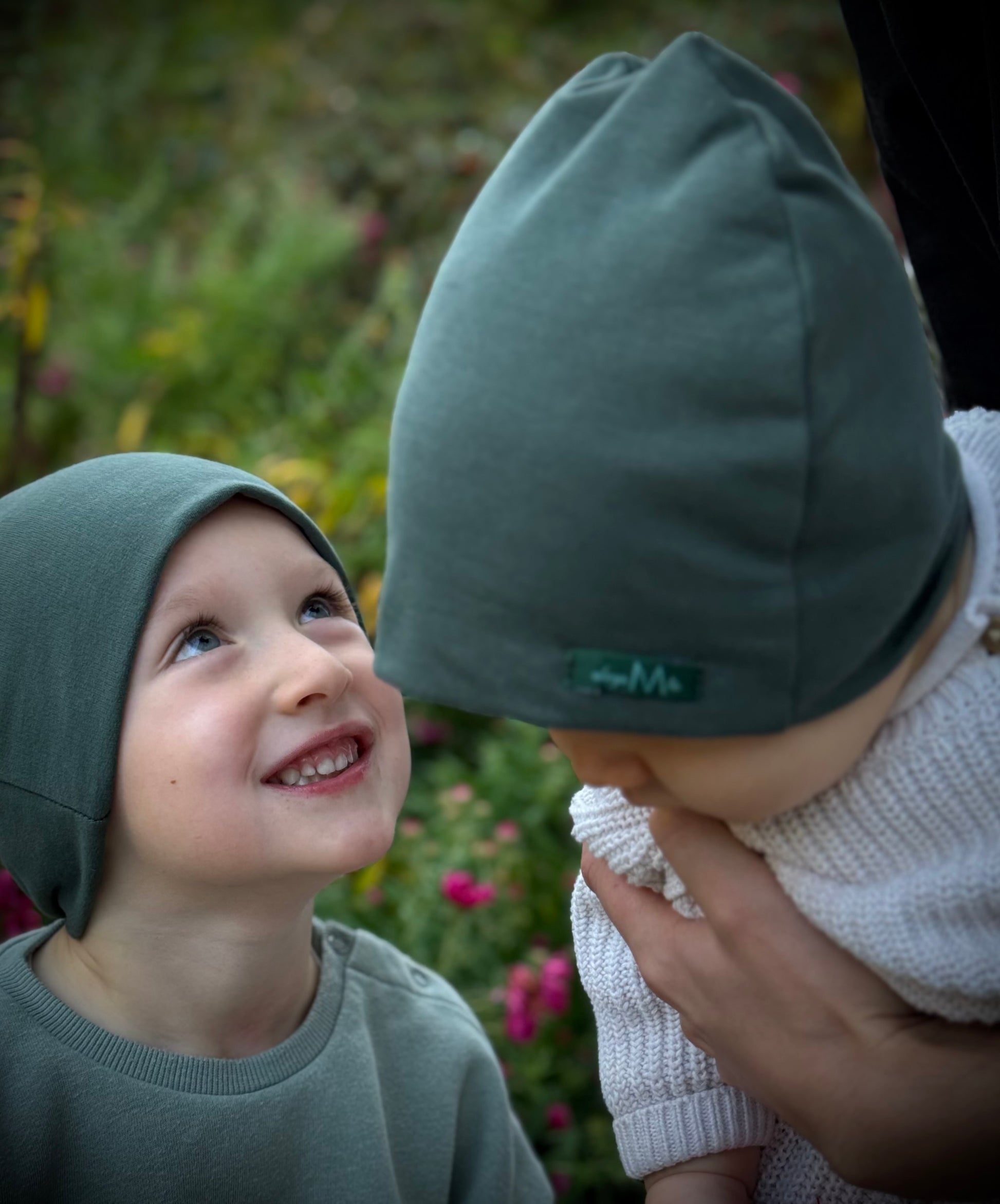 Čepička drží krásně na hlavě. Je šitá dvojitě, takže je vhodná i do velmi chladných dnů. Ten materiál si opravdu zamilujete! Je měkoučký, jemný, příjemný, bio, prodyšný…