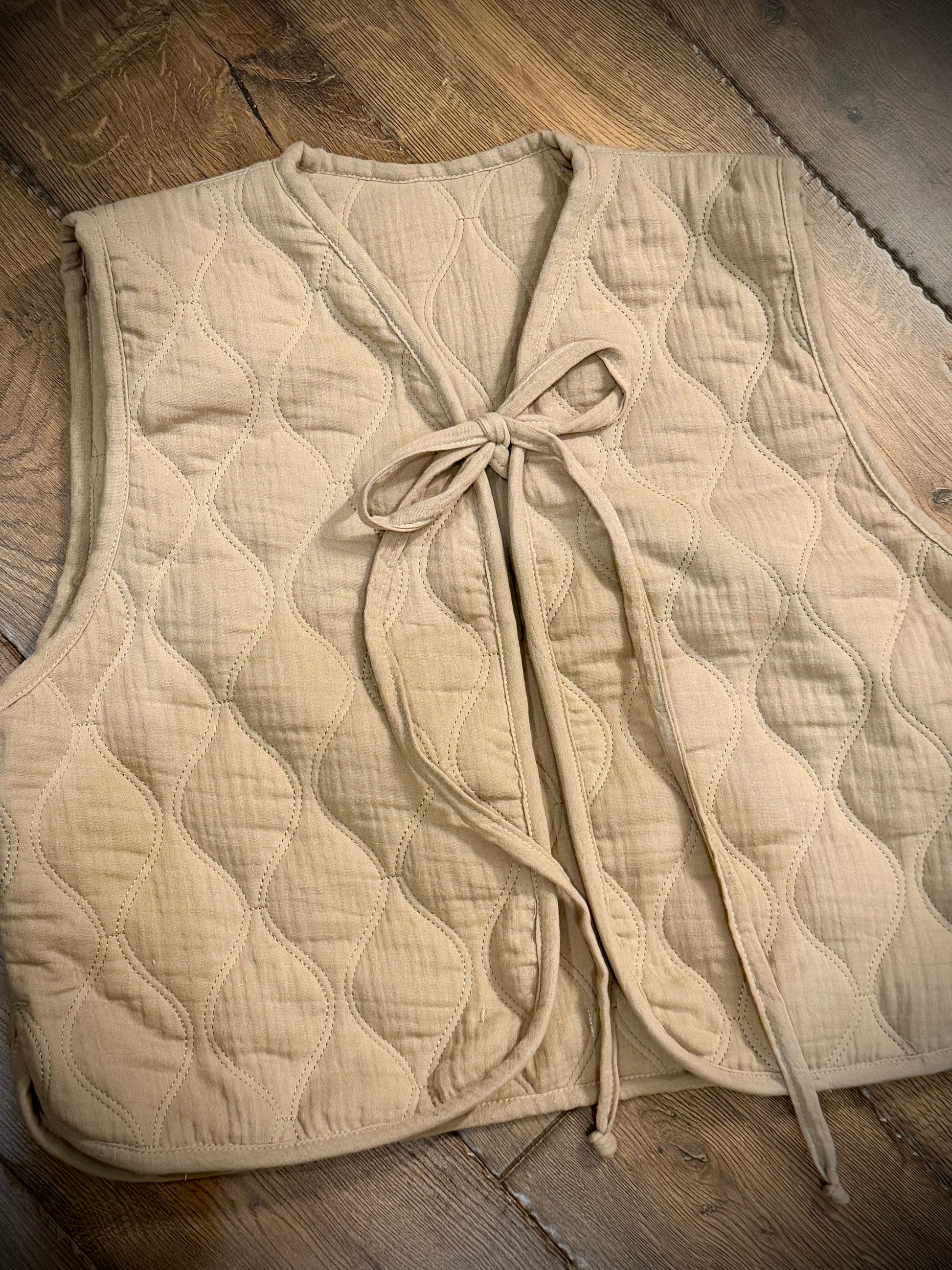 Béžovou vestičku s jednou béžovou mašličkou mám skladem:)